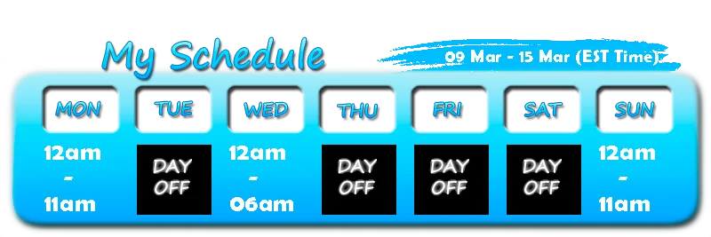Sculacciate, Feticismo dei piedi, Esibizionismo, Spogliarello, Linguaggio esplicito, Ingoio, Dildo o Vibratore, Hardcore, Giocare con la sborra, CEI, Istruzioni per sborrare, Masturbazione, Ballo erotico, Flessioni, Pecorina, Spettacolo con olio, SPH, Umiliazione, Twerk, Giocattoli erotici, Giochi di ruolo, Valutazione del cazzo, Bacio, Sborrata, Eiaculazione, Orgasmo, Ditalino, Sega